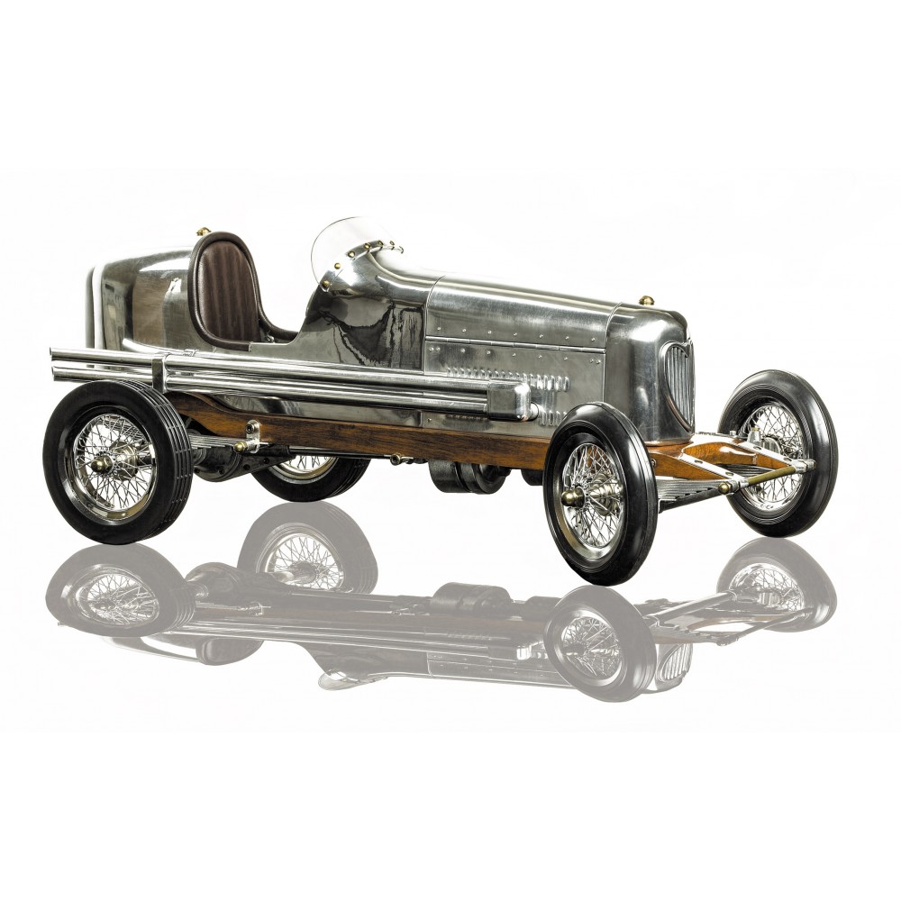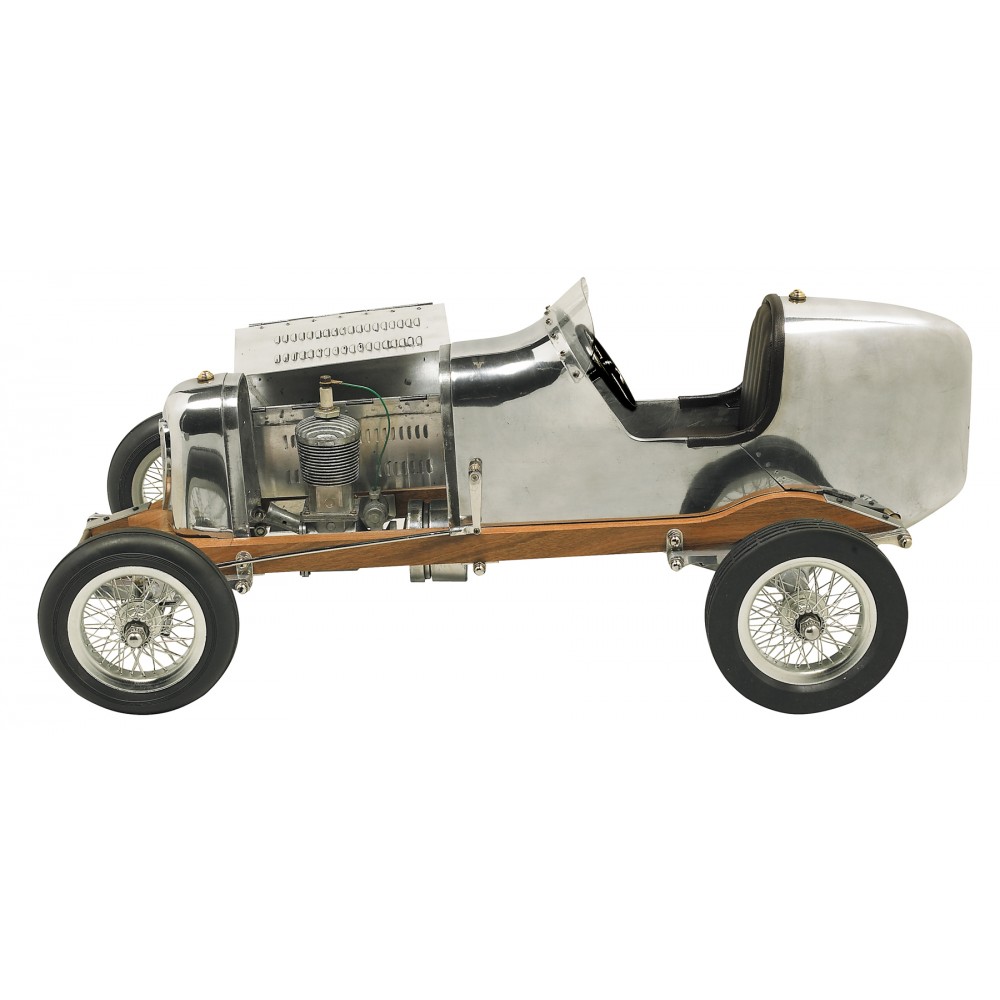 The 1930s saw the rise of hand built model racecars, known as spindizzies or tether cars. Miniature racecars built by hobbyists zoomed around banked wooden tracks at speeds approaching 150 miles per hour. Resembling the full-size racers of their day, several spindizzies competed at once, tethered by cables to a central pole. Powered by model airplane engines, spindizzies raced against the clock. Incredibly detailed and aerodynamic, these miniature racecars were beyond toys; they were pieces of art representative of the best pioneering technology of the era. Constructed using original blueprints, our Bantam Midget model resembles the original down to the smallest detail. One look and you’ll be ready to join the competition.